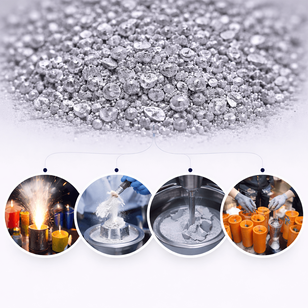 ويتميز المسحوق بلونه الرمادي المعدني ونشاطه المرتفع، مما يجعله خياراً مفضلاً للتطبيقات التي تتطلب أداءً عالياً وتفاعلية متقدمة. ويتوفر مسحوق الألمنيوم غير المنتظم بدرجات ناعمة ومتوسطة وخشنة، مع نطاقات حجم جسيمات تتراوح عادة بين 10 و500 ميكرون وفقاً لمتطلبات التطبيق. تتراوح مستويات نقاء الألمنيوم عادة بين 98.0% و99.5%، مع إمكانية توفير معالجات سطحية أو عمليات تخميل اختيارية لتعزيز السلامة أثناء المناولة وإطالة فترة التخزين. وتشمل التطبيقات الرئيسية الألعاب النارية والمواد البيروتقنية، ومركبات الثرمايت واللحام، والمواد الدافعة والمتفجرات، والتفاعلات الكيميائية، والإضافات المعدنية، والأصباغ المعدنية المتخصصة. وبفضل بنيته الجسيمية ذات الحواف الحادة، يوفر مسحوق الألمنيوم غير المنتظم سرعة اشتعال عالية وإطلاق طاقة مرتفعاً وقدرة تماسك قوية داخل الخلطات المركبة، مما يجعله فعالاً بشكل خاص في الأنظمة عالية الأداء والتطبيقات التفاعلية.
