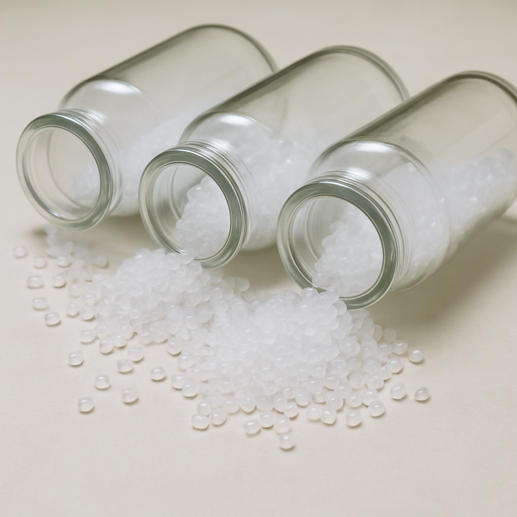 In addition to the base polymer Polyolefin, these hotmelts usually also contain a resin and a wax . Mostly the polyolefin hot melt adhesives can be recognized by their white color and water clear, fully transparent fluid in the hot pot (hot melt tank).