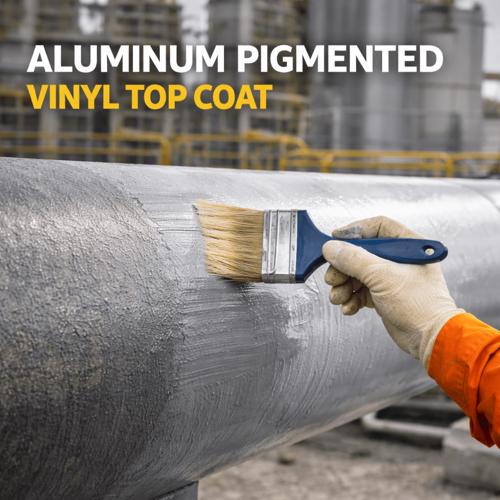 Aluminum Pigmented Vinyl Top Coat is a high-performance protective coating formulated to provide excellent corrosion resistance and long-term durability in aggressive industrial environments. This coating contains finely selected aluminum pigments that create a reflective, barrier-type film on the surface.