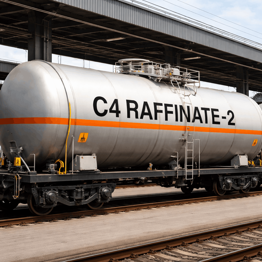 From a commercial and logistics standpoint, C4 Raffinate-2 is supplied in bulk quantities via pressurized rail tank cars, road tankers, and specialized storage tanks, designed for liquefied hydrocarbon service. Packaging is aligned with international safety and transport standards for flammable gases and liquefied hydrocarbons. Typical technical specifications cover composition range, sulfur content, moisture level, and pressure-temperature behavior. With its reliable availability, versatile applications, and strong demand in petrochemical value chains, C4 Raffinate-2 remains a strategic raw material for large-scale industrial and energy-related applications.