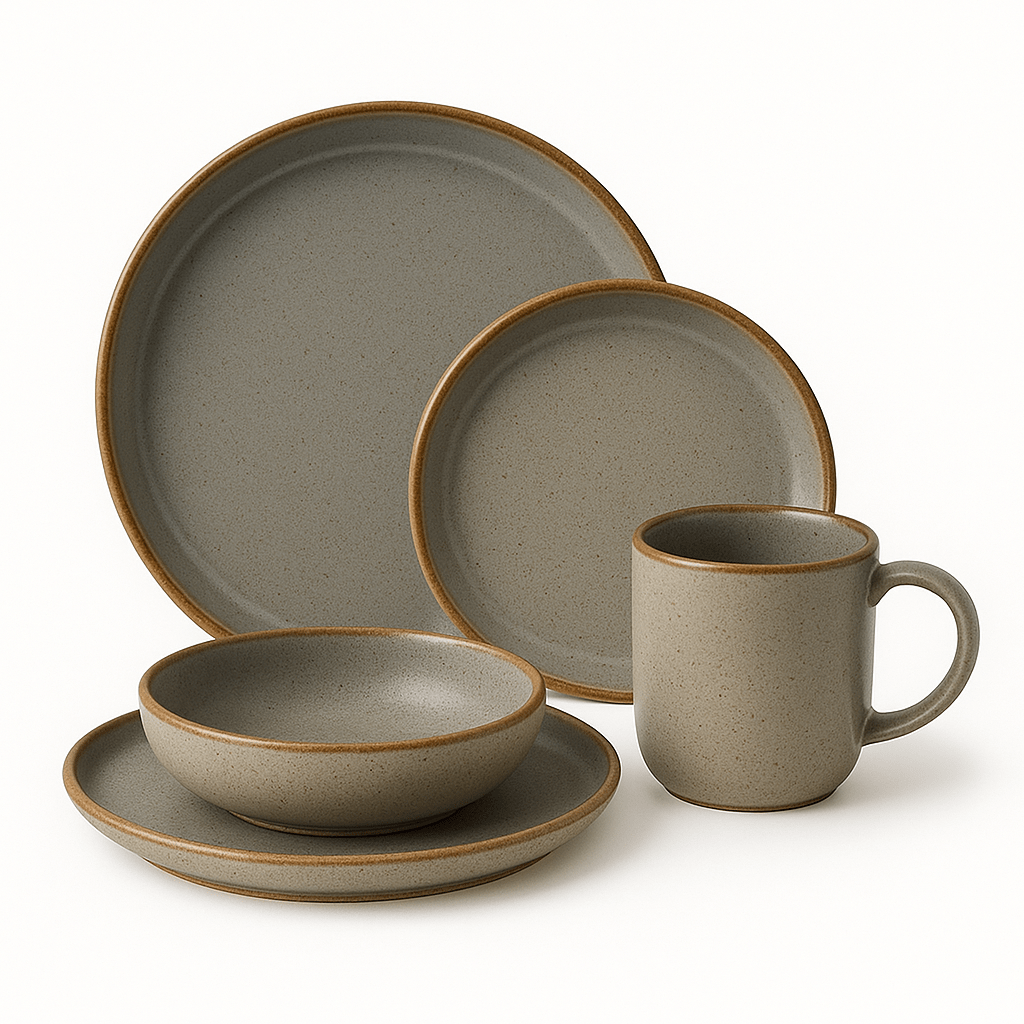 A complete set of dinnerware typically includes dinner plates, salad plates (or side plates), soup bowls, dessert plates, cups, saucers, and may also include additional serving pieces like platters, serving bowls, and sometimes bread and butter plates depending on the set’s size and style. Earthenware is generally the most affordable option for ceramic dinnerware types. It’s made from normal clay and is fired at relatively low temperatures—between 1000℃ and 1150℃. Earthenware is glazed or unglazed nonvitreous pottery and the design and look could work well with certain hospitality aesthetics
