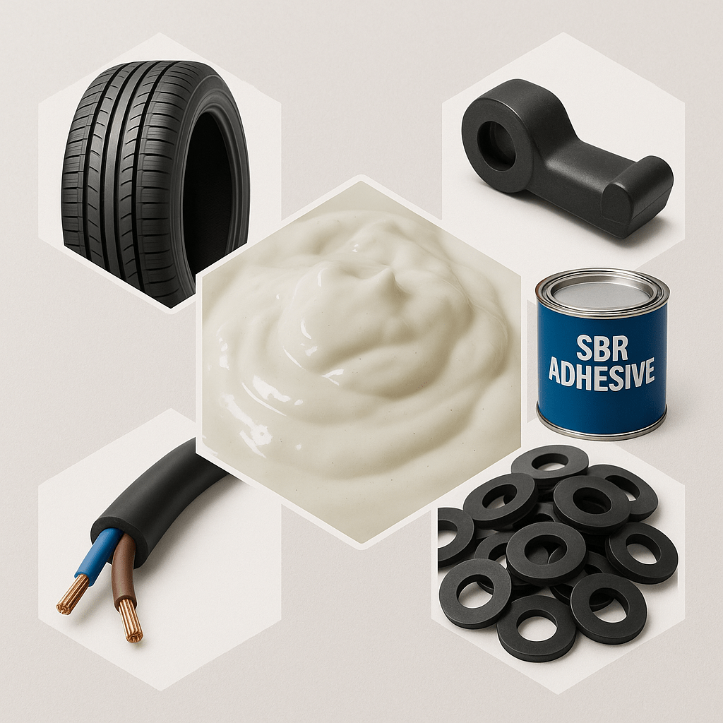 It’s a widely used general-purpose rubber, known for its good tensile strength, tear resistance, and abrasion resistance. E-SBR is particularly favored in tire manufacturing, but also finds applications in footwear, conveyor belts, and various industrial rubber products. E-SBR exhibits good mechanical properties, making it suitable for applications requiring strength and durability. It has good resistance to wear and abrasion, making it suitable for tires and other applications involving friction.
