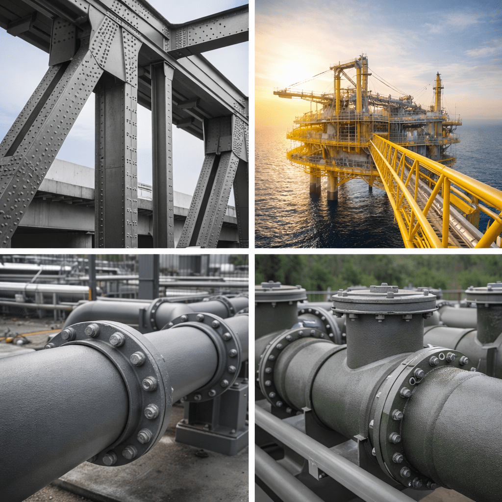 Epoxy MIO Topcoat paints are available in standard epoxy MIO, high-build epoxy MIO, and surface-tolerant grades, depending on project specifications and exposure conditions. Typical applications include structural steel, bridges, offshore platforms, oil & gas facilities, storage tanks, marine structures, power plants, and industrial steel frameworks. Key specifications include high solids content, excellent adhesion, low water vapor permeability, and strong resistance to abrasion, weathering, and chemicals. The lamellar structure of MIO pigments creates an overlapping barrier effect that significantly reduces moisture and oxygen penetration. Major advantages include enhanced corrosion resistance, improved crack resistance, excellent intercoat adhesion, and compatibility with epoxy primers and polyurethane or epoxy finish coats.