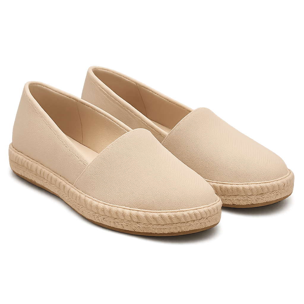 The upper part of the shoe is usually made of canvas or cotton, but can also be in leather, suede, or other materials. Espadrilles come in various styles, including flat sandals, wedges, and even heeled versions. They can be closed-toe or open-toe, with or without laces that may wrap around the ankle.
