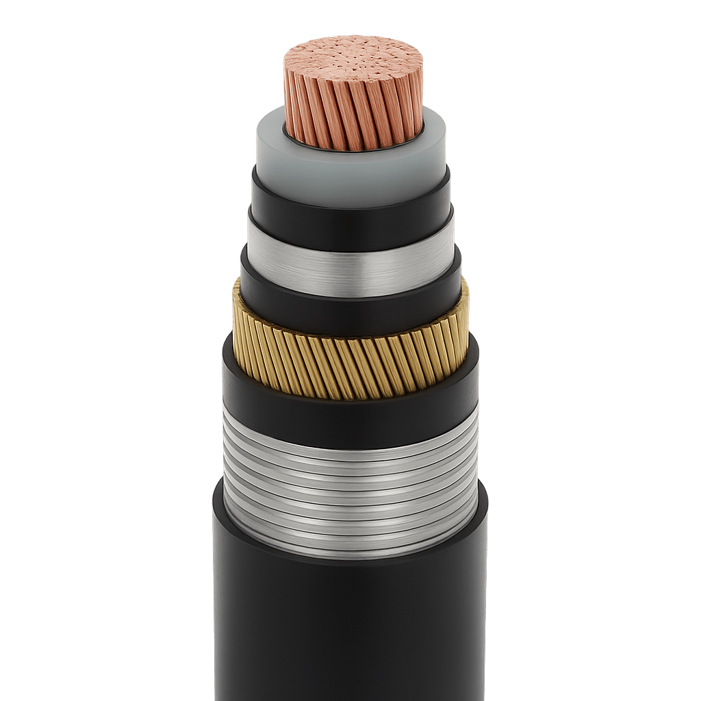 Manufactured using precision engineering and state-of-the-art extrusion and cross-linking technologies, EHT Power Cables consist of solid or stranded copper or aluminum conductors, triple-layer XLPE insulation, inner and outer semiconducting screens, metallic sheathing, and robust outer armoring. They are available in single-core and three-core types, depending on system requirements. Each cable is tested under stringent IEC 62067 and IEEE 48 international standards to guarantee electrical, mechanical, and thermal reliability. Applications include interconnection of power generation stations, high-capacity substations, offshore and onshore transmission networks, and renewable energy integration systems such as solar and wind farms.