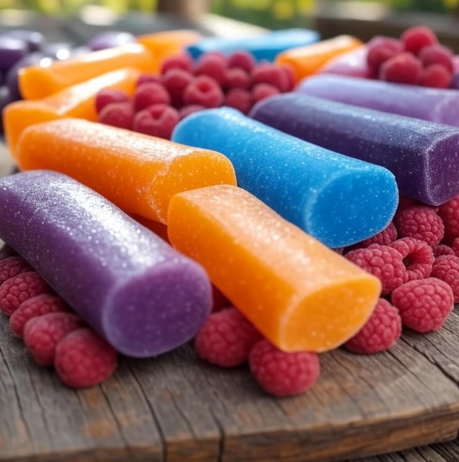 Freezies come in sealed plastic tubular wrappers and conform to the shape of the wrapper when frozen to serve; as such, they do not need to be stored cold. They also do not need to be frozen as solidly as an ice pop and can have a consistency similar to that of a slushie. Freezies are sold in a variety of flavors, including cherry, orange, lemon-lime, watermelon, cream soda, blue raspberry and grape.