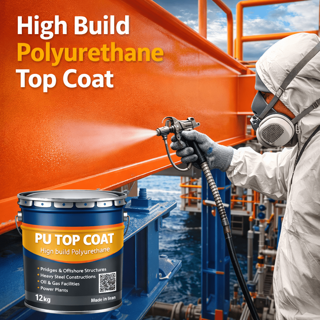 These coatings combine mechanical strength with an attractive, uniform appearance. They are widely selected for projects where both protection and visual quality are critical. High build polyurethane top coats are based on premium polyurethane resins that provide excellent adhesion, flexibility, and impact resistance. High-solids content enables thick film formation without sagging or surface defects. The cured coating forms a tough yet elastic film that withstands thermal movement and vibration. They show strong resistance to water, oils, fuels, solvents, and many industrial chemicals and their excellent flow and leveling properties result in smooth, glossy or semi-gloss finishes.