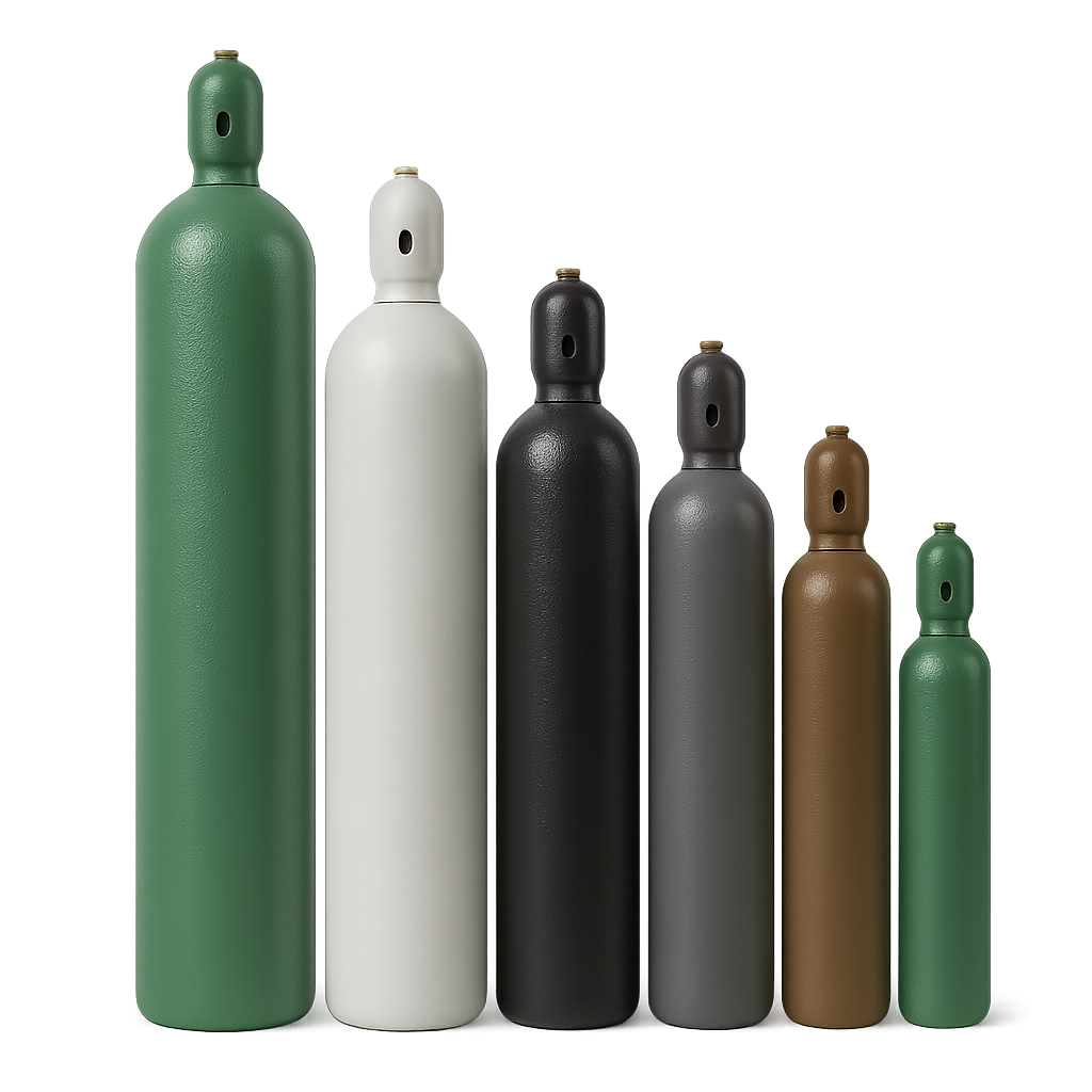 Cylinders are designed to withstand specific working pressures, which can range from 130 to 140 bar (or 200 bar) they undergo hydrostatic testing to ensure their structural integrity and safety. These cylinders Complies with DOT, TC, ISO, and military specifications and multiple sizes , capacities and options for customization ,painting , stamping , neck-rings are available .