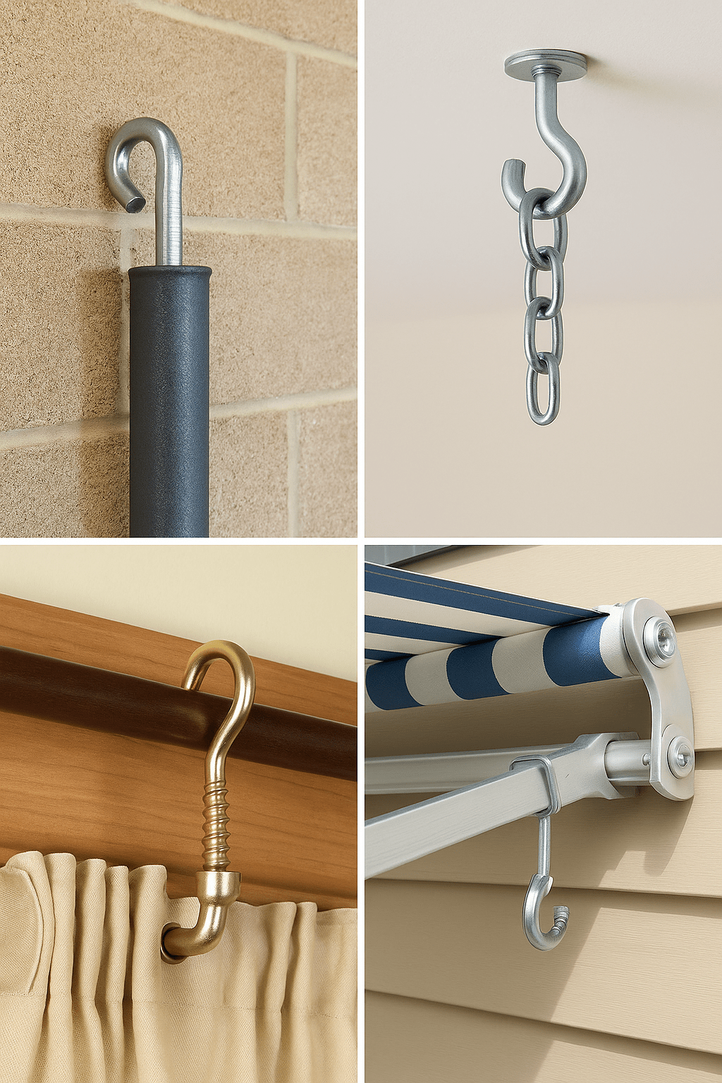 Hook bolts can be used in Securing roofing sheets, holding angle iron sections, and creating tie-down points in concrete , Suspending items from ceilings or walls, such as plants, signs, or lighting fixtures and Securing various items in home improvement projects, including shelves, brackets, and storage solutions. Other uses are Hanging garden tools, planters, or outdoor lighting on fences or walls and in Industrial Applications for Fastening machinery components, creating anchor points, or securing pipes.