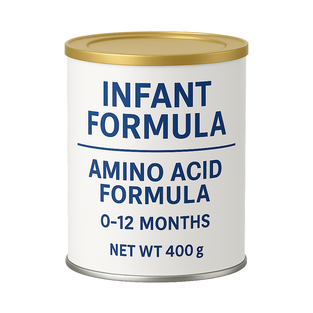 Amino acid formulas are intended for infants with severe cow milk allergy who have reactions to extensively hydrolyzed formulas or refuse to consume them. These formulas provide protein in the form of free amino acids, without any peptides.