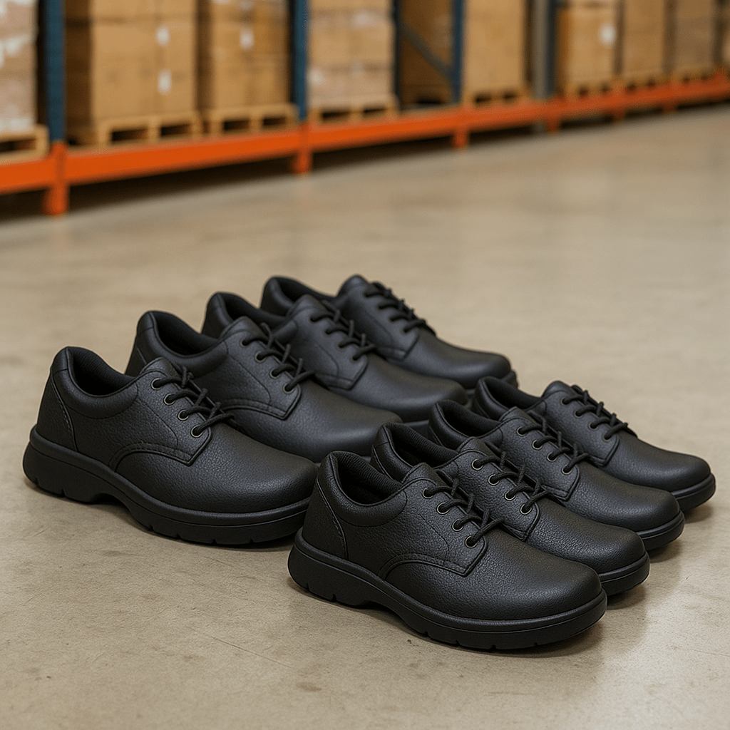 Non-Slip work shoes feature specialized outsoles with slip-resistant properties, such as tread patterns and materials that increase grip on wet or oily surfaces. Non-slip shoes are essential for employees working in kitchens, hospitals, warehouses, and other high-risk areas where safety is paramount. By investing in non-slip shoes, businesses can prioritize employee safety and minimize workplace accidents.