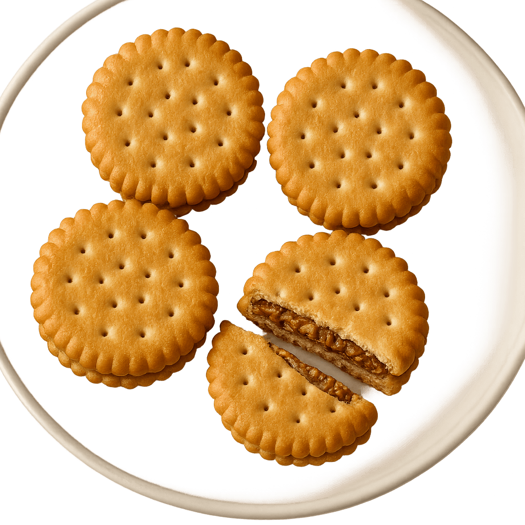Available in multiple shapes—round, square, rectangular, mini-bite, and embossed—Nut Filled Biscuits come in several filling varieties including hazelnut cream, peanut cream, almond cream, pistachio cream, cashew cream, and mixed-nut blends. It also possible to offer chocolate-coated nut-filled biscuits and sandwich formats for added market diversity. These biscuits are widely used in retail snacking, school packs, coffee shop service, hotel amenities, and premium gifting. Industrial applications include dessert toppings, ice-cream inclusions, and bakery fillings. Production is carried out on automated forming, filling, baking, and cooling lines to ensure uniform weight, stable filling distribution, and controlled moisture levels for long-distance shipping.