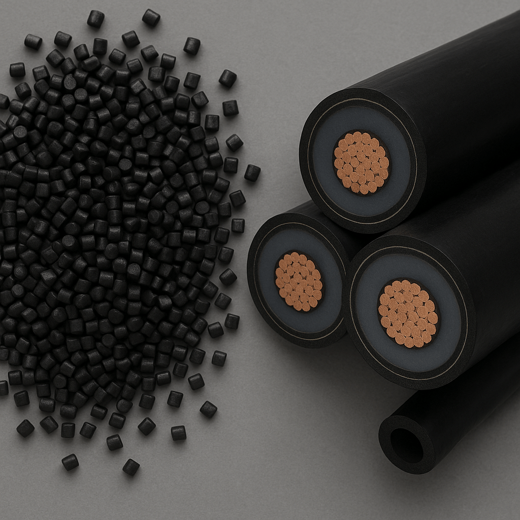 Polyethylene (PE) compounds can be produced in both low-density and high-density versions with different colors , according to the intended industry it will be used in. PE compounds can be sued in producing pipes , Solid Insulation Compounds for Telecommunications , HDPE for Defense application field wire , Power cable sheathing applications , films and sheets and steel pipe coating ..