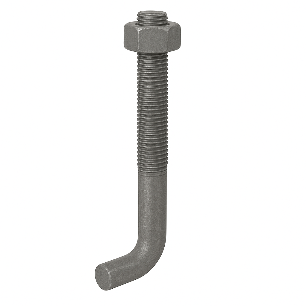 This distinctive foundation bolt has a square or rectangular cross-section, a tapered body, and grooves on all four sides. Rag bolt installation must be completed before the entire assembly can be set in concrete.