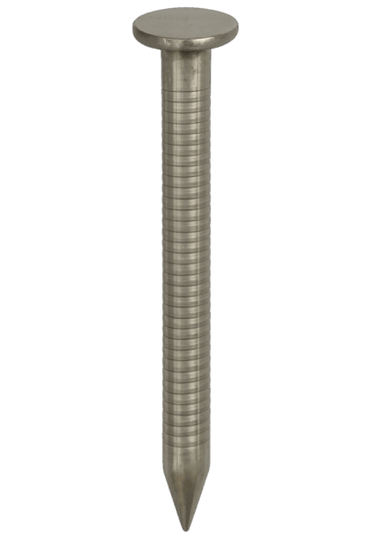 Ring Shank Nails are commonly used for installing subflooring, where the extra holding power can help prevent floors from squeaking. Similar nails that may have rings include drywall nails or deck board nails, also for improved holding power. These are similar  to common nails but comprise rings along the length of the shank. This provides better grip in the timber and a more secure attachment.