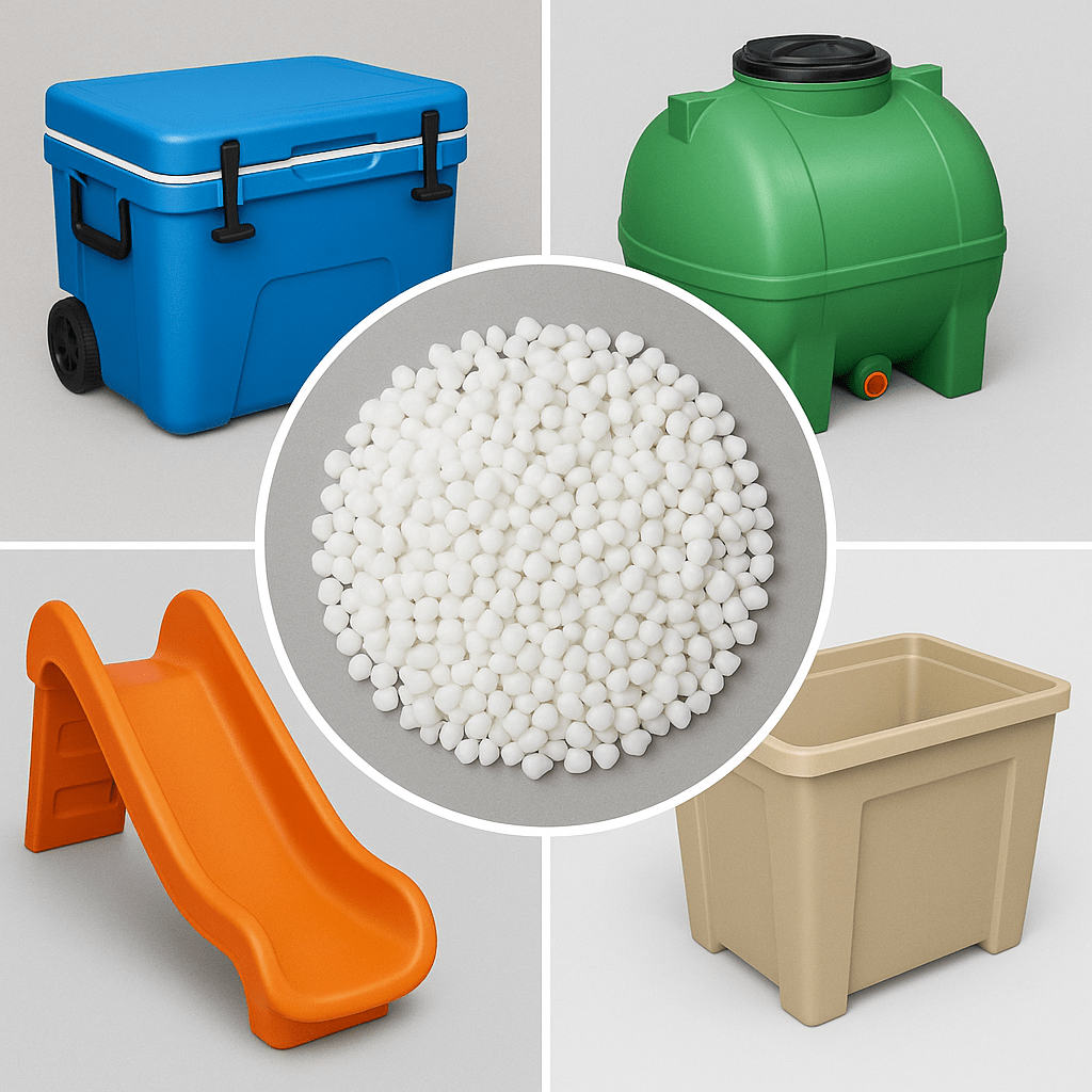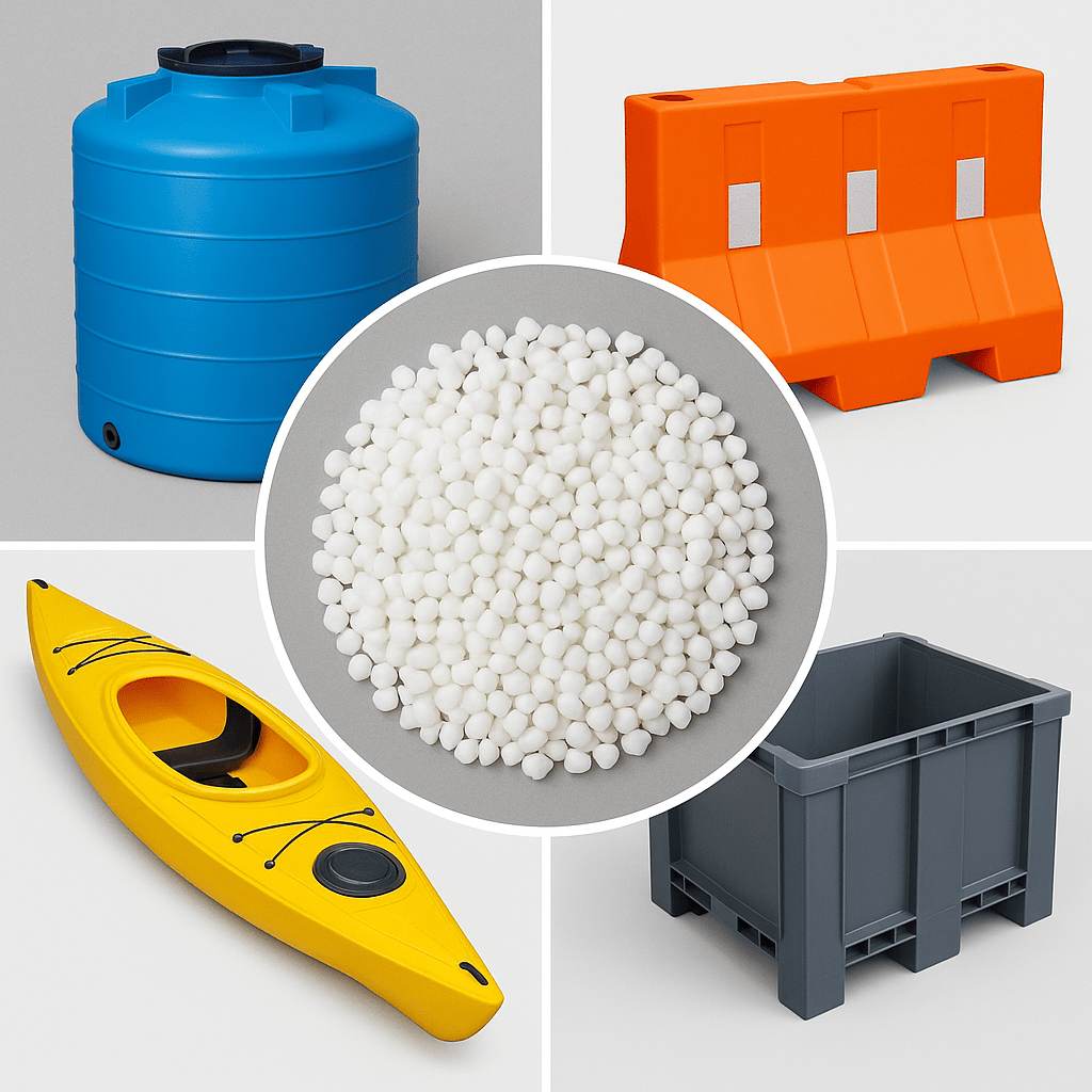 Rotomolding PE compounds are widely used in the production of large hollow products such as water tanks, septic tanks, chemical storage tanks, agricultural containers, road barriers, toys, marine buoys, pallets, automotive components, and customized industrial housings. Their outstanding UV stabilization and environmental stress-crack resistance (ESCR) make them ideal for harsh weather conditions, underground installation, and heavy-duty industrial environments. These materials provide excellent resistance against acids, alkalis, fuels, detergents, and moisture, ensuring long-term product performance and meanwhile Rotomolding PE compounds offer superior heat stability, minimal bubble formation, and consistent rheological behavior, supporting efficient cycle times and reducing manufacturing defects.
