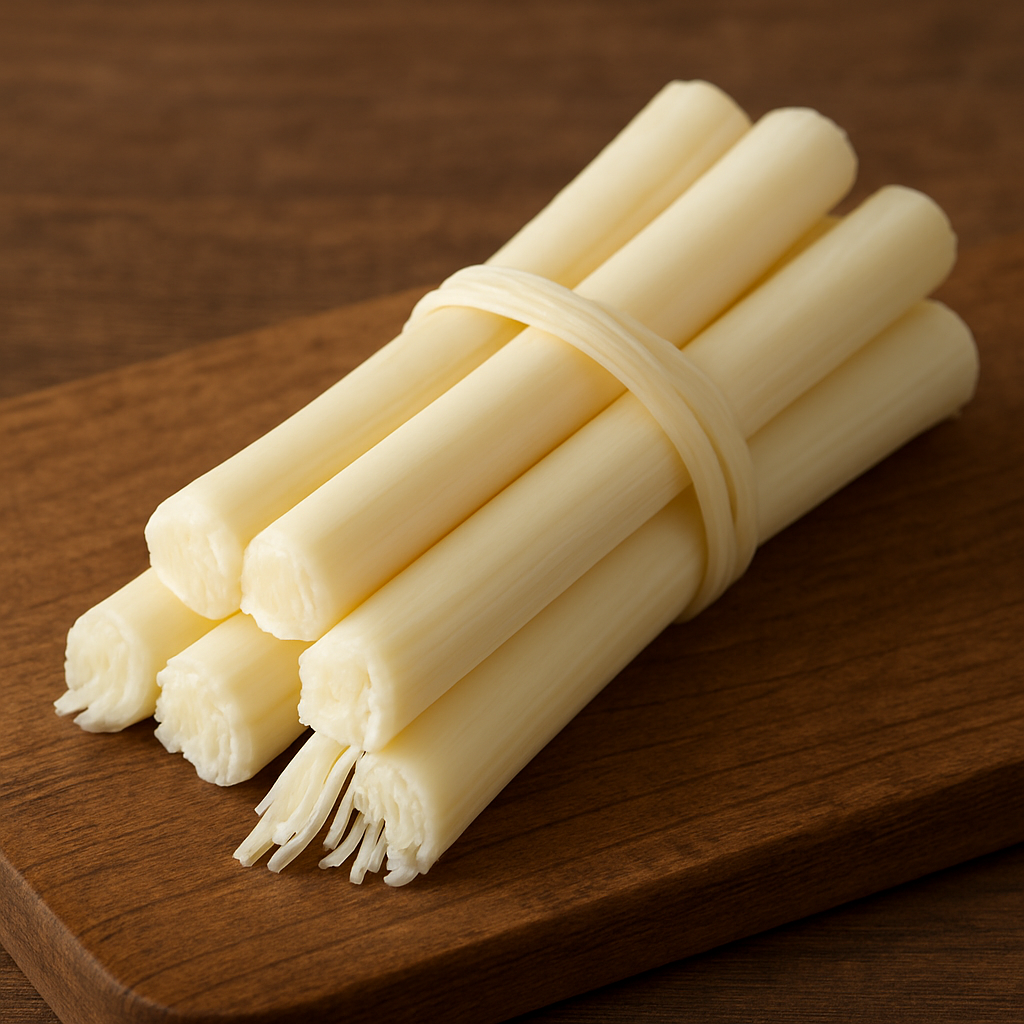 String Cheese, a globally beloved snack, is particularly extremely popular, especially among children. Heating hard cheese to 60°C (140°F)) and then stretching it causes the milk proteins to line up; this process is what gives string cheese its signature stringy texture.