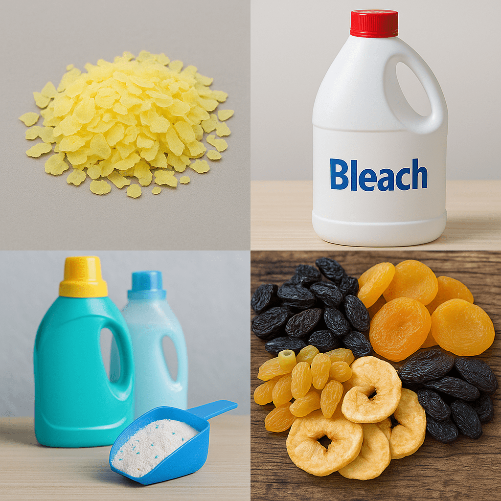 Large quantities of sulfites are used to bleach paper and to preserve dried fruit. Many surfactants and detergents (e.g. sodium lauryl sulfate) are sulfate derivatives. Different types of Sulphur can be supplied such as Powder Sulfur , Flake Sulfur , Granules Sulphur and lump Sulfur in required purities .