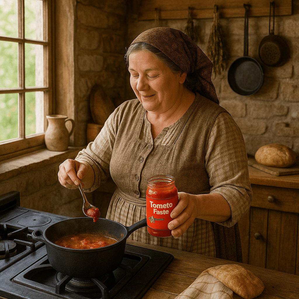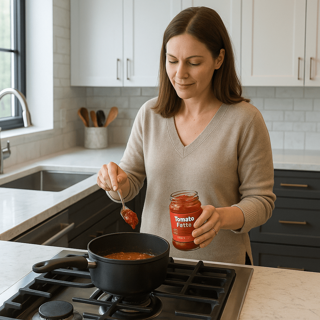Tomato Paste is a thick paste made from tomatoes, which are cooked for several hours to reduce water content, straining out seeds and skins, and cooking the liquid again to reduce the base to a thick, rich concentrate.