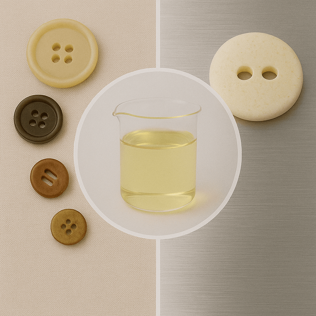 This is a high-clarity, durable, and pigment-friendly castable resin formulated specifically to produce fashion buttons, garment accessories, and decorative polymer hardware. This resin offers excellent transparency, brilliant color acceptance, and smooth polishability, enabling manufacturers to produce premium plastic buttons with marble, pearl, neon, matte, or solid-color effects.