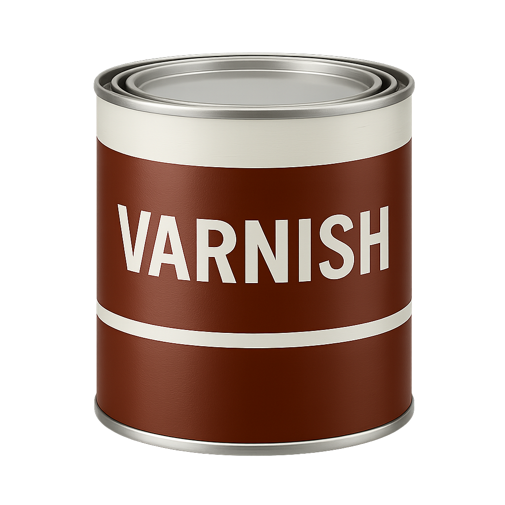 Varnish is a combination of a drying oil, a resin, and a thinner or solvent plus a metal drier to accelerate the drying. After being applied, the film-forming substances in varnishes either harden directly, as soon as the solvent has fully evaporated, or harden after evaporation of the solvent through curing processes. There are many different types of drying oils, including linseed oil, tung oil, and walnut oil that are used in varnishes and the resins can be amber, kauri gum, dammar, copal, rosin (colophony or pine resin), sandarac, balsam, elemi, mastic, and shellac. Varnish also can be created from synthetic resins such as acrylic, alkyd, or polyurethane, and Epoxy. Solvents that are used in varnishes mostly are white spirit, paint thinner, and mineral spirit.