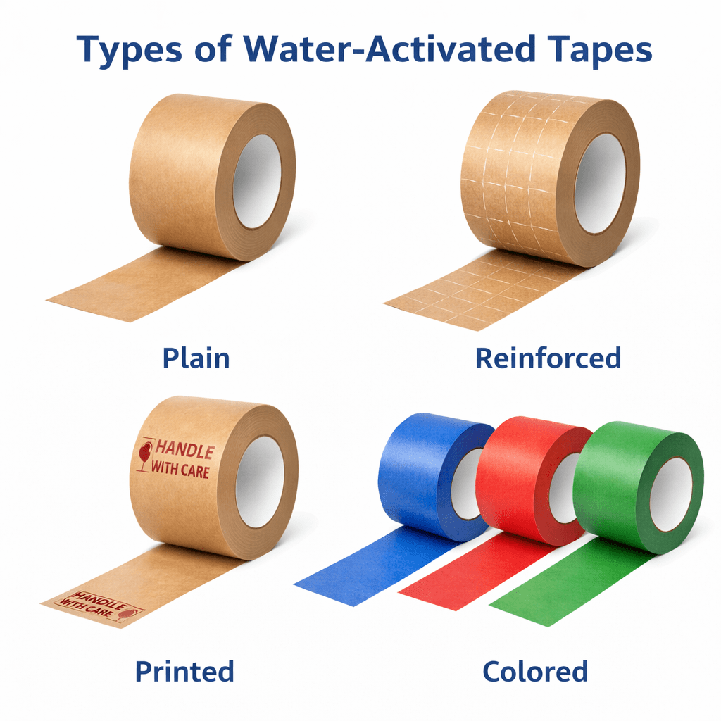 Its professional appearance, strong adhesion, and sustainable paper-based structure make water activated tape a preferred choice for modern packaging, logistics, and e-commerce operations. This Tape is available in several types such as plain kraft water activated tape, reinforced water activated tape with fiberglass yarn, white paper gummed tape, and custom printed water activated tape, this product meets a wide range of packaging needs. The main components include kraft paper backing, starch-based or modified adhesive coatings, and optional fiberglass reinforcement for extra tensile strength. Water activated tape is widely used in carton sealing, export packaging, heavy-duty shipping, warehouse operations, and branded packaging. From a technical perspective, it offers excellent adhesion to corrugated surfaces, high holding power, resistance to temperature changes, and strong performance in dusty or recycled cartons where pressure-sensitive tapes may fail. It also provides noise-free application and improves overall packaging efficiency.